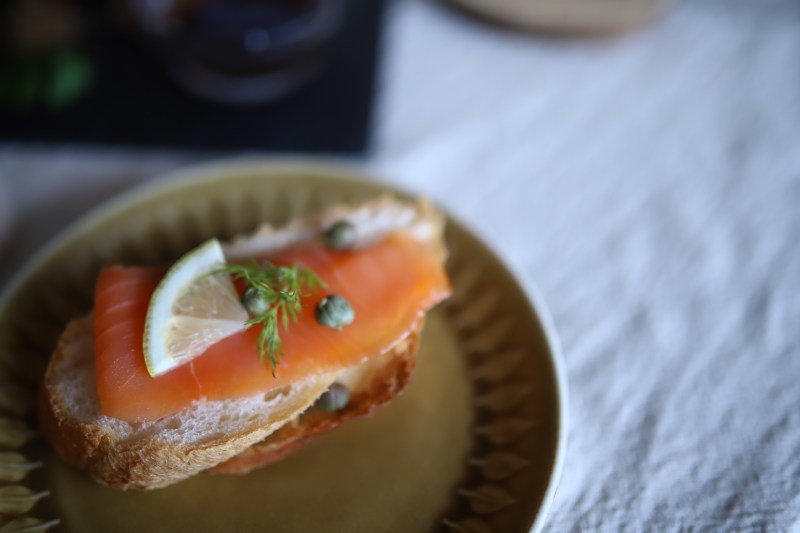 お皿にベーグルを盛りお好みでトッピングしたら出来上がり。