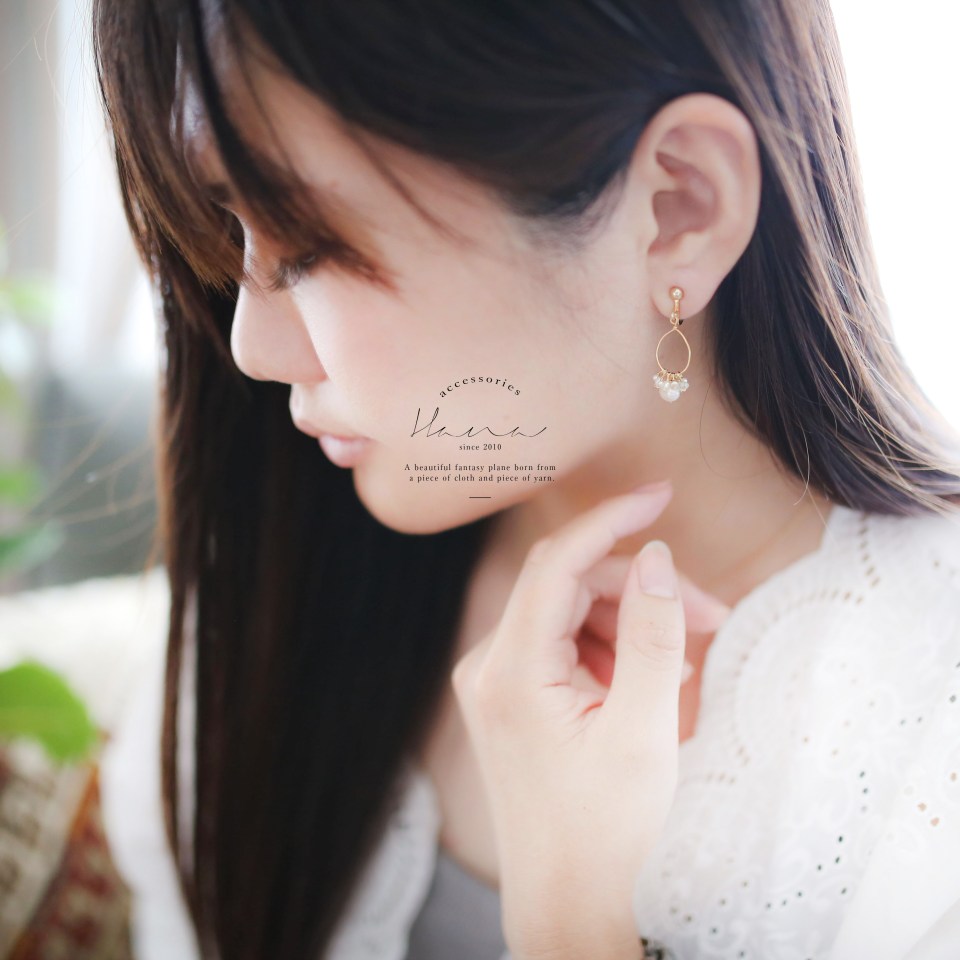 コットンパールのパーツをお使い頂く際はピアスに引っ掛けてそのまま耳にお付け下さい。