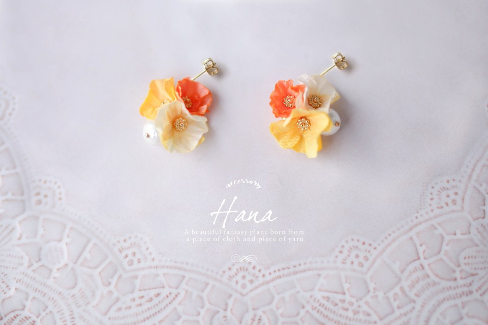 新作はポピーの花とコットンパールを組み合わせピアス・イヤリングにしました。